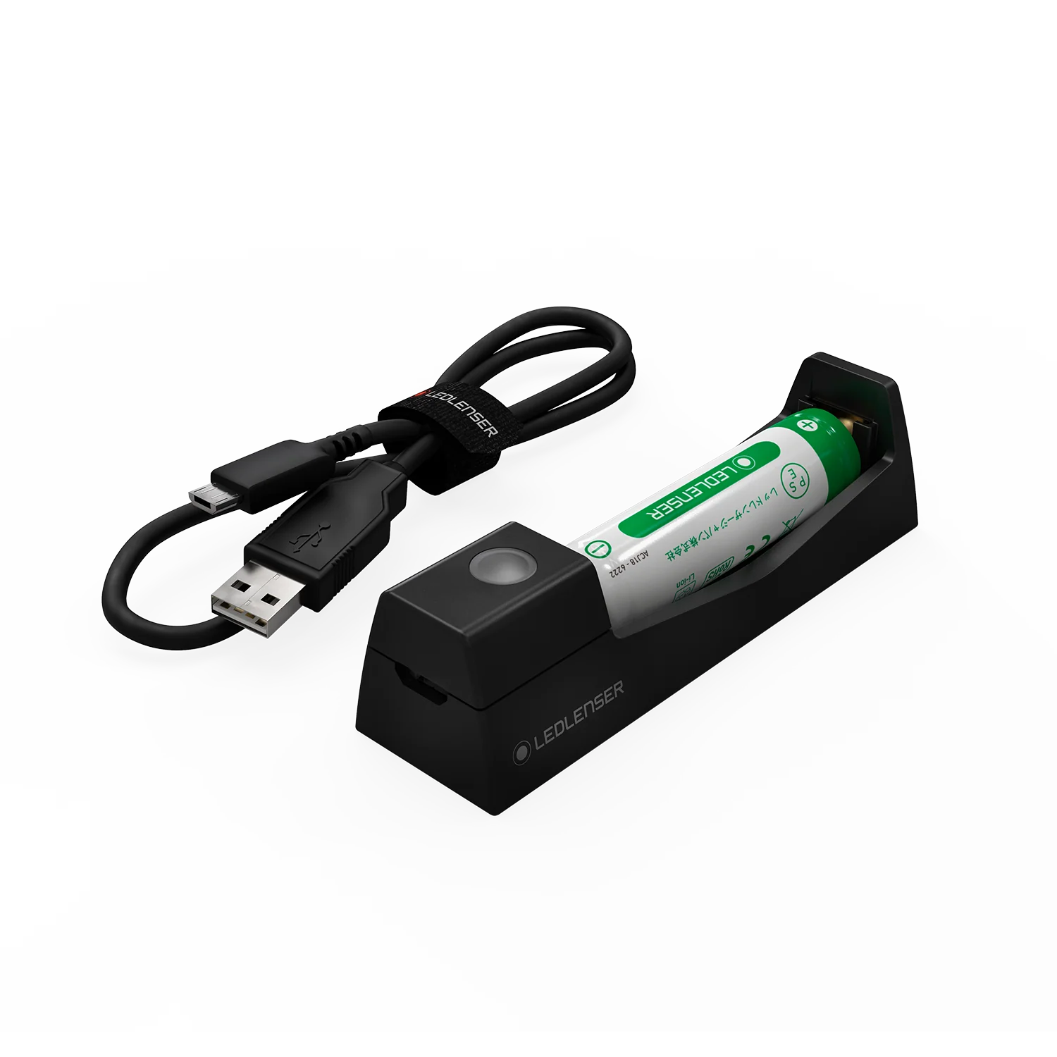 This charger and battery set can be used with the P5R Core, P5R Work, MH3, MH4 and MH5. When used with MH3 and MH4, it doubles lumens maximum output to 400 lumens and adds rechargeable functionality, thereby saving costs and the environment at the same time. The charger can be used worldwide: battery charger powered by USB cable. The charge status LED shows when the battery is fully charged.